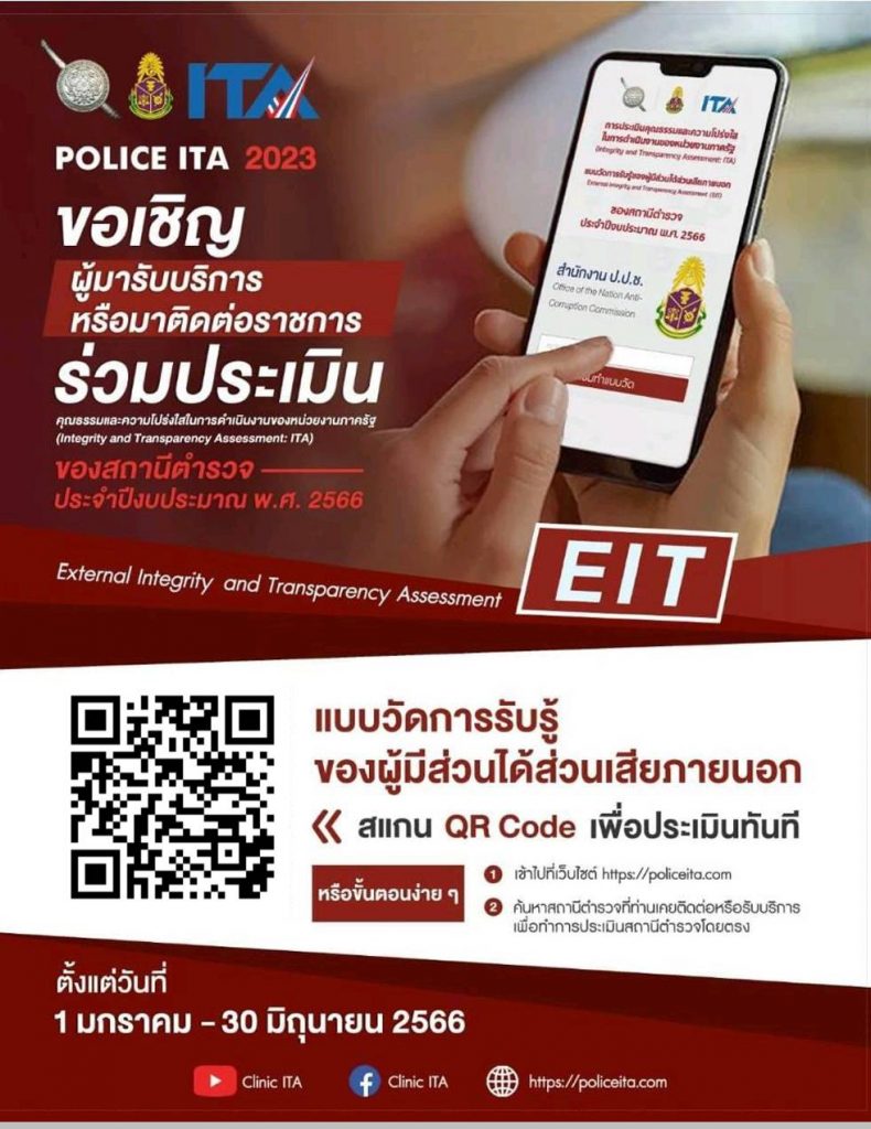 ข่าวกิจกรรม 05 27 พฤษภาคม 2565 โดย admin / ข่าวประชาสัมพันธ์,ข่าวกิจกรรม ขอเชิญผู้มารับบริการหรือมาติดต่อราชการ ร่วมประเมินคุณธรรมและความโปร่งใส ในการดำเนินงานของหน่วยงานภาครัฐ (Integrity and Transparency Assessment: ITA) Facebook iconFacebookTwitter iconTwitterLINE iconLine