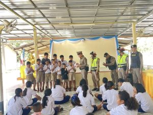 3 ธ.ค.67) เวลา 08.20 น.พ.ต.ท.นพดล ผลพัฒนา รอง ผกก.ป.สภ.ห้วยเม็กพร้อมชดจราจร สายตรวจรถยนต์ ดำเนินโครงการครู 5 นาที ให้ความรู้นักเรียนหลังเข้าแถวเคารพธงชาติ เกี่ยวกับ ยาเสพติด บุหรี่ไฟฟ้า ภัยอาชญากรรมออนไลน์ แก้งค์คอลเซนเตอร์ และความปลอดภัยทางถนน ให้กับนักเรียนชั้น ป. 1-6 จำนวน 110 คน ณ โรงเรียนหนองปะโอประชาอุทิศ