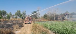 (27 ก.พ.68)เวลาประมาณ 09:40 น.ร.ต.ท.สุภาพ เดชอรัญรอง สว (ป.)ฯปฏิบัติหน้าที่ร้อยเวร 20 ประจำวันนี้ พร้อมสายตรวจรถยนต์ว.4 ตรวจสอบ ไฟไหม้ซังอ้อยลุกลาม สายสัญญาณโทรศัพท์ใกล้บริเวณ โรงเรียน ไทยเทค เส้นทาง สามแยกไฟแดงฮาทบาร์ มุ่งหน้าบ้านห้วยยางจึงได้ประสาน น้ำยาดับเพลิงเคมีจาก อบต.คำใหญ่ และรถดับเพลิง จากเทศบาลห้วยเม็ก ช่วยกันดับจนเพลิงสงบ
