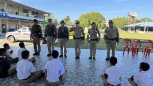 3 ธ.ค.67) เวลา 08.20 น.พ.ต.ท.นพดล ผลพัฒนา รอง ผกก.ป.สภ.ห้วยเม็กพร้อมชดจราจร สายตรวจรถยนต์ ดำเนินโครงการครู 5 นาที ให้ความรู้นักเรียนหลังเข้าแถวเคารพธงชาติ เกี่ยวกับ ยาเสพติด บุหรี่ไฟฟ้า ภัยอาชญากรรมออนไลน์ แก้งค์คอลเซนเตอร์ และความปลอดภัยทางถนน ให้กับนักเรียนชั้น ป. 1-6 จำนวน 110 คน ณ โรงเรียนหนองปะโอประชาอุทิศ